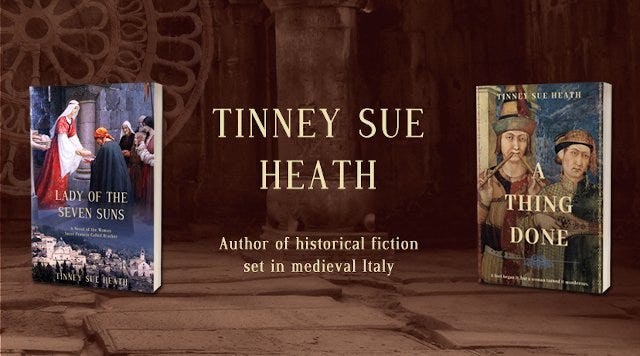 A few days ago, I was interviewed by another historical novelist for her newsletter. It was lovely to summarize what my little medieval Italian town (Certaldo) and the stories that I set there mean to me. So, I’m sharing that interview with you today. (Check out Tinney’s website for her blog/newsletter and ways to order her books. I’ve said before that A Thing Done is one of my favorite medieval novels of all time.)